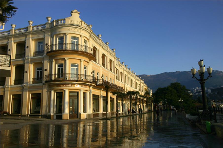 Экскурсия начинается в г. Саки и проходит через степную (Сакский, Симферопольский районы), предгорную (Симферопольский) и горную часть полуострова (Ангарский перевал 752 м н. у.м., Алуштинский регион). По дороге Вы увидите Долгоруковскую яйлу, гору Чатырдаг, живописную гору Демерджи. Дальше маршрут проходит по южному берегу Крыма и следует через Алушту мимо горы Кастель и знаменитой Медведь-горы, через поселки Никита, Массандра. Говоря о крымском южном береге подразумевают курортные зоны Большой Ялты и Большой Алушты, многочисленные курортные посёлки и курортные местности. протянувшиеся от Фороса до Судака Южный берег Крыма — одна из важнейших и наиболее популярных в бывшем СССР приморских зон курортного лечения, отдыха и туризма. Экскурсовод предоставляет дорожную информацию о местах и достопримечательностях по всему маршруту. Набережная Ялты. Ялта — жемчужина ЮБК. История города от тавров до наших дней. Обзор Ялтинского амфитеатра. Прогулка по Набережной Ялты- одной из красивых набережных в мире. Морская прогулка (по метеоусловиям) Ливадийский дворец (обзорная экскурсия), парк. Дворец сооружен в 1910-1911гг. по проекту архитектора Н.П. Краснова. Являлся летней резиденцией последнего российского императора Николая II. В 1945 году здесь проходила Ялтинская конференция стран-участниц антигитлеровской коалиции. Ласточкино гнездо со смотровой площадки. Замок построен на самом краю Аврориной скалы по проекту архитектора А.В. Шервуда в 1911-1912 гг. Это самое известное архитектурное сооружение Крыма, является его символом. Воронцовский дворец. (обз.) Воронцовский дворец- построен по проекту английского архитектора Э. Блора для генерал-губернатора Новороссийского края, графа М.С. Воронцова. Дворец удачно сочетает два стиля: английскую готику и восточную архитектуру. Алупкинский парк (1 час) - шедевр садово-паркового искусства. Руководил разбивкой парка немецкий садовник Карл Кебах. Площадь парка-40 га. В парке насчитывается более 200 экзотических древесно-кустарниковых видов, разновидностей и садовых форм. Здесь акклиматизировано множество растений стран средиземноморья, северной и южной Америки, Восточной Азии. Свои пышные склоны раскинули магнолии крупноцветковые и платан восточный, дуб пробковый и сосна итальянская. Здесь растут пальмы и лавры, кипарисы и маслины, земляничники мелкоплодный и крупноплодный, араукария чилийская и калина вечнозеленая. Между большим и малым хаосами находятся три искусственных пруда, которым приданы очертания горных озер. Алупкинские пруды населяют белые лебеди, декоративные рыбки. Ещё одна достопримечательность Южного берега Крыма -Подвесная канатная дорога Мисхор-Ай-Петри. Канатная дорога на Ай-Петри - уникальная канатная дорога, ведущая из поселка Мисхор к гребню горы Ай-Петри, на высоту более километра. Строительство дороги велось с 1967 по 1987 годы. Для всеобщего посещения канатная дорога была открыта в марте 1988 года. На плато Ай-Петри Вы можете подняться к зубцам Ай-Петри и подегустировать блюда национальной кухни. Спускаемся с плато Ай-Петри через Большой каньон Крыма. Большой Каньон Крыма – это громадная тектоническая трещина, возникшая много миллионов лет назад в результате отделения горы Бойка от Ялтинской яйлы. Располагается каньон с Востока на Запад вдоль Северных склонов Ялтинской яйлы.( Т