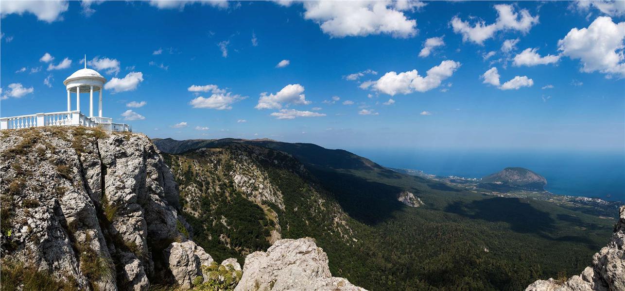 На южном склоне гряды Крымских гор, практически на скальном выступе обрыва, горделиво возвышается белоснежная каменная колоннада, увенчанная куполом. Словно парящая в воздухе, легендарная Беседка ветров — одна из культовых достопримечательностей Гурзуфа, сфотографироваться в которой мечтает почти каждый путешественник. Здесь, на вершине Шаган-Кая, на ум приходят строчки из песни Владимира Высоцкого: «Весь мир на ладони, ты счастлив и нем...». И действительно, взору открываются совершенно бесподобные виды: в поле зрения четыре полуторакилометровые горные вершины, внизу, у самого моря — гора Аю-Даг, острова Адалары, курортный Гурзуф, вечно юный «Артек», Партенит и бесконечное Черное море. В хорошую погоду видимость достигает целых 150 км!