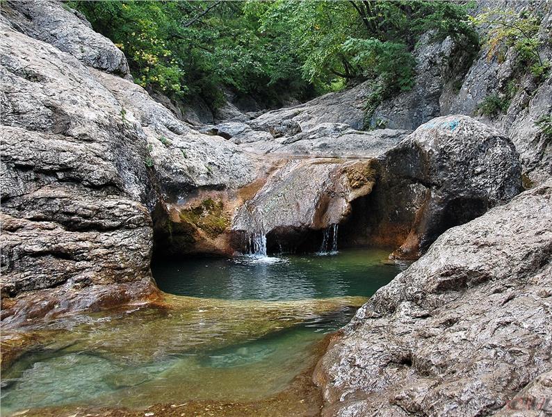 Источник Пания, крупнейший (370 л/с) карстовый источник Крыма. Впервые исследован и описан Н. В. Рухловым в 1915 г.