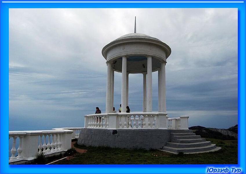 На южном склоне гряды Крымских гор, практически на скальном выступе обрыва, горделиво возвышается белоснежная каменная колоннада, увенчанная куполом. Словно парящая в воздухе, легендарная Беседка ветров — одна из культовых достопримечательностей Гурзуфа, сфотографироваться в которой мечтает почти каждый путешественник. Здесь, на вершине Шаган-Кая, на ум приходят строчки из песни Владимира Высоцкого: «Весь мир на ладони, ты счастлив и нем...». И действительно, взору открываются совершенно бесподобные виды: в поле зрения четыре полуторакилометровые горные вершины, внизу, у самого моря — гора Аю-Даг, острова Адалары, курортный Гурзуф, вечно юный «Артек», Партенит и бесконечное Черное море. В хорошую погоду видимость достигает целых 150 км!